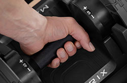 | 革新的な可変式のダンベル グリップを握り、回転させるだけで片手で簡単に重量を変更できます。従来のダンベルのようにプレートを付け替える手間がなく、簡単に2s刻みで正確な重量設定が可能です。重量変化は数字で視認できます。