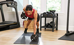 底面がフラットなウエイトプレートにより、ダンベルをセットする際の転がりを防止。これにより、安心して集中力を高めた筋力トレーニングが可能です。